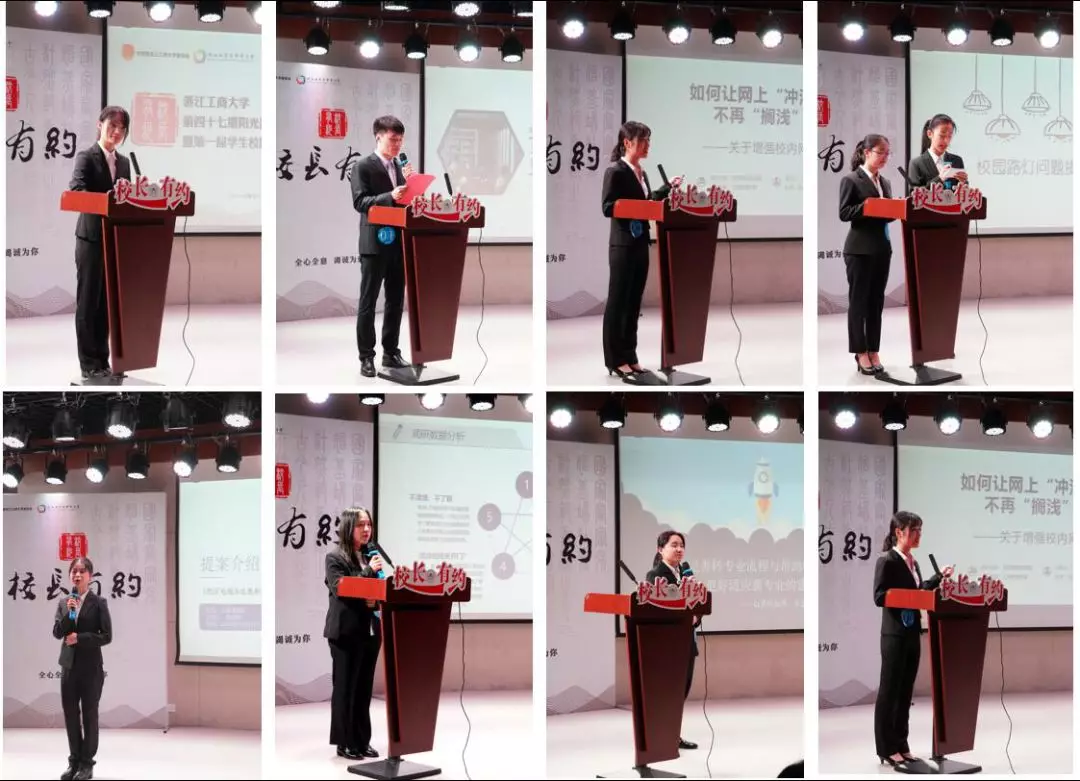 校党委办公室、校长办公室、学生处、研究生工作部、教务处、公共事务管理处、保卫处、图书馆、网络信息中心、后勤服务中心、体育工作部、团委部门负责人以及各提案团队、学院师生代表齐聚一堂,以比赛竞技的方式,交流心声、共话学校发展。