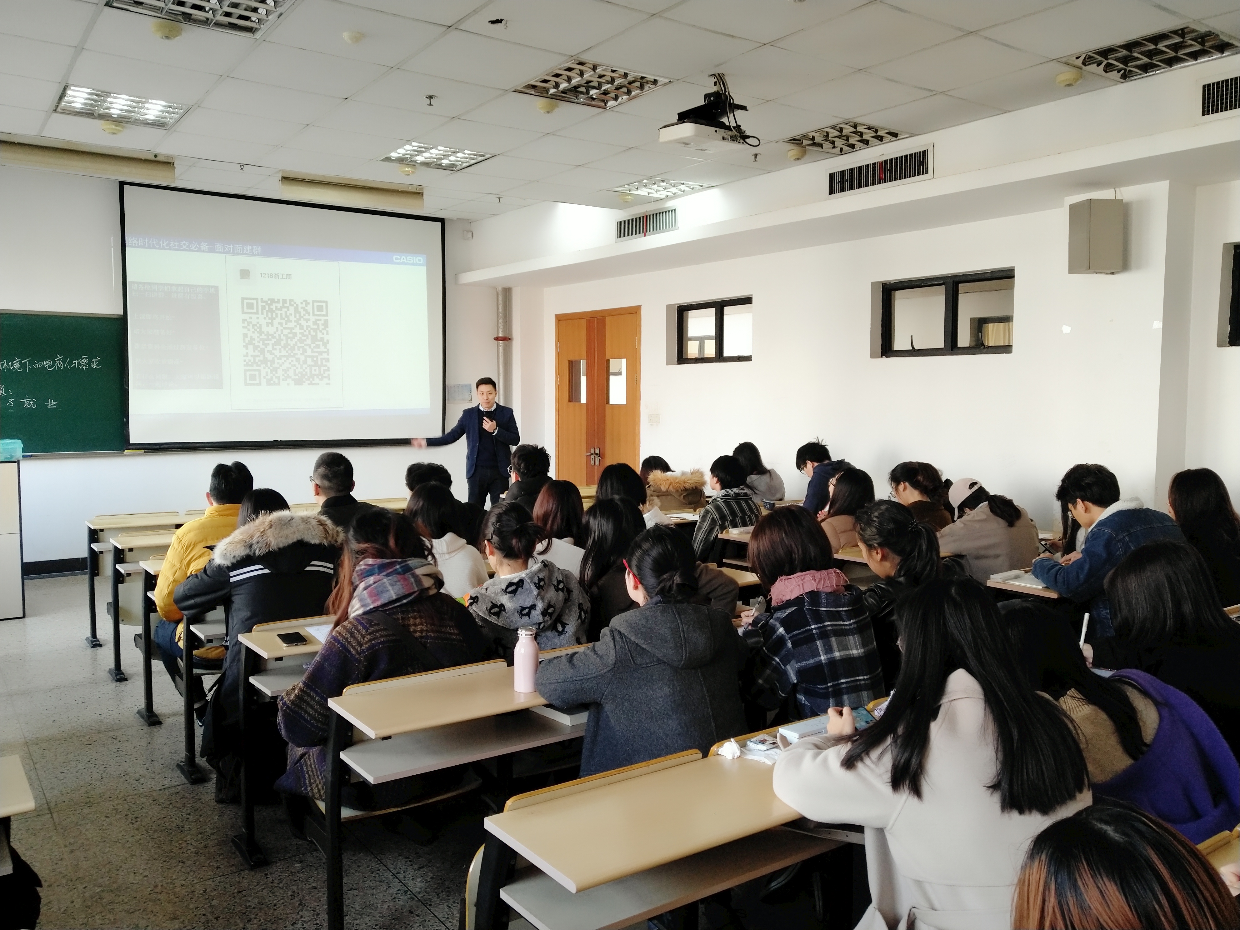 2018年12月18日上午9:50,在A教学楼314教室,卡西欧的李弘昊李先生为我们作了题为“新网络环境下的电商人才需求”的报告。使我们受益匪浅,给我们毕业班的同学带来了满满的干货。