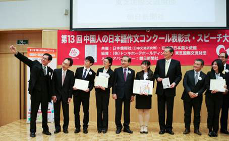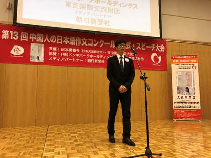 (日本驻华大使馆,邱吉在第13届全中国日语作文大赛颁奖典礼上发表获奖感言)