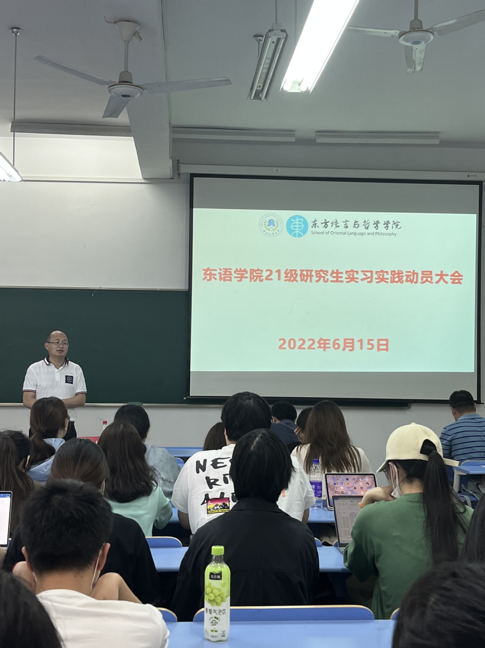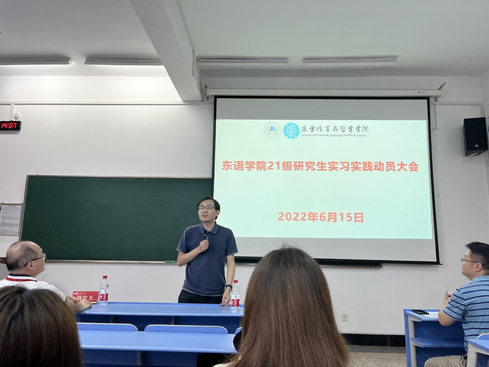董院长以实习实践为切入点,希望同学们打破专业局限,将眼光放长远而不要仅局限于教培、翻译等专业相关工作,并强调了及早准备学位论文的重要性,并希望在当前严峻就业形势下同学们尽早将实习、就业关联起来。