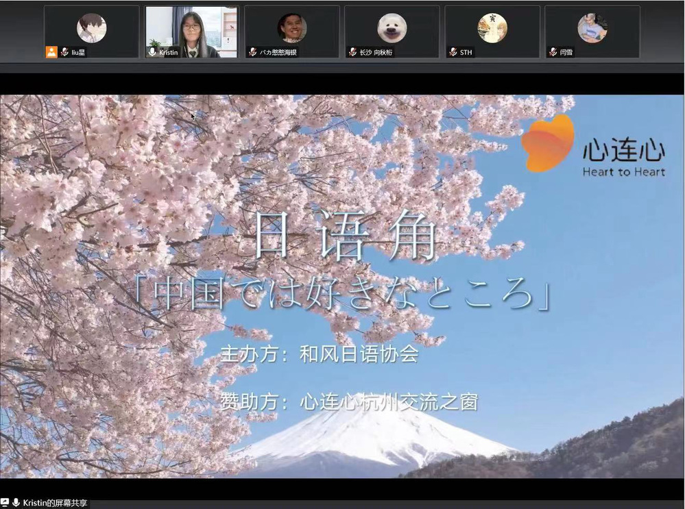 11月5日,由搜书吧 联合日本国际交流基金会“心连心”杭州中日交流之窗主办的面向全国日语爱好者的日语角活动成功举行,活动主题为“中国では好きなところ(在中国喜欢的地方)”。来自我省杭州市、温州市及黑龙江省哈尔滨市、江苏省苏州市等地区高校数十名师生围绕主题进行热烈交流(线上)。