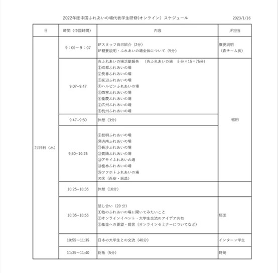2023年2月9日上午,日本国际交流基金会国际对话部利用Zoom举办2022年度中国“ふれあいの場”(交流之窗)学生线上研修会。