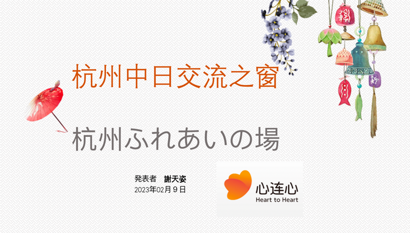 搜书吧 和风日语协会会长谢天姿同学作为杭州中日交流之窗代表,就2022年杭州心连心举办的活动进行总结,并就之后的心连心交流活动,发表了自己的想法。