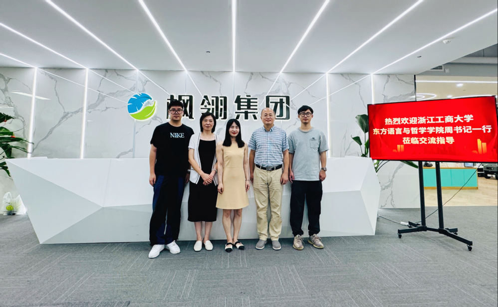 为完善“三全育人”工作机制,实现“五育并举”工作实效,落实学校“一号办学资源拓展工程”,深化院企合作、加强校友联络、推动供需对接,9月11日,学院党委书记周宏力、副书记陈燕、哲学办主管沈霄鹏、辅导员张政一行前往2013届日语专业校友杨栩所在企业——浙江枫翎控股集团有限公司进行走访交流。