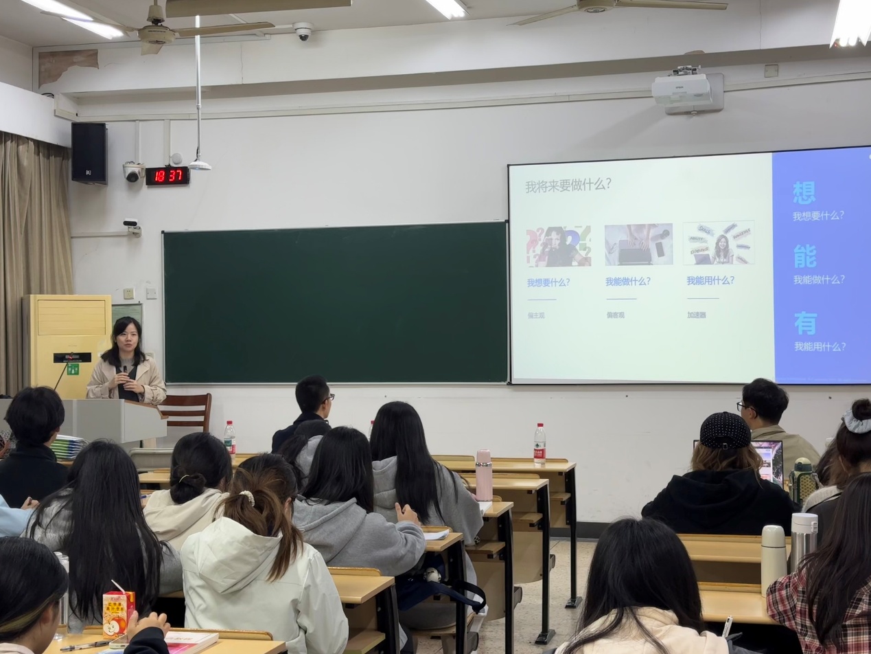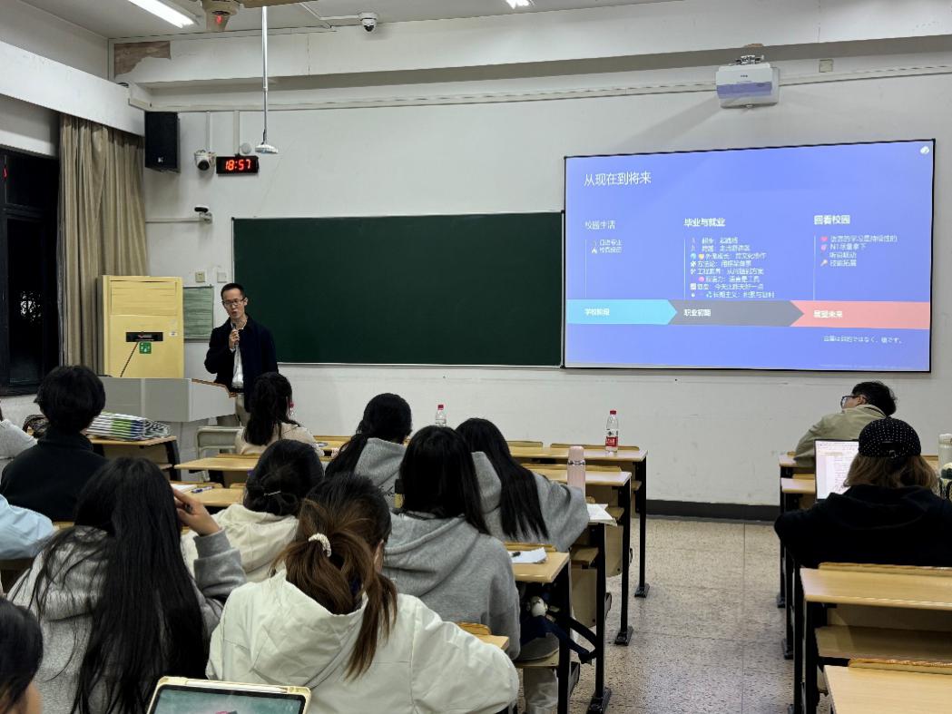 当课堂知识与行业前沿碰撞,会擦出怎样的火花?10月29日下午,日语系邀请到搜书吧 首届日语专业优秀毕业生,现任凯捷技术咨询(杭州)有限公司集团金融事业部中华区招聘经理的施玉玲学姐带着其团队一行受邀走进《大学生职业发展规划》课堂,五位嘉宾带着丰富的行业经验、前沿的职场洞察,为同学们带来了生动的一课。本次活动由张政老师主持。